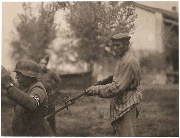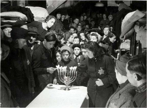 This incredible image depicts Jews, not in hiding, but within a transit camp in Holland lighting a Menorah on Hanukkah. You can see just how packed this room is. This image is of a man in the Jewish Brigade, a segment of the British Army that fought the Germans in Italy in 1944. The rocket says ¡°Hitler¡¯s Gift¡±